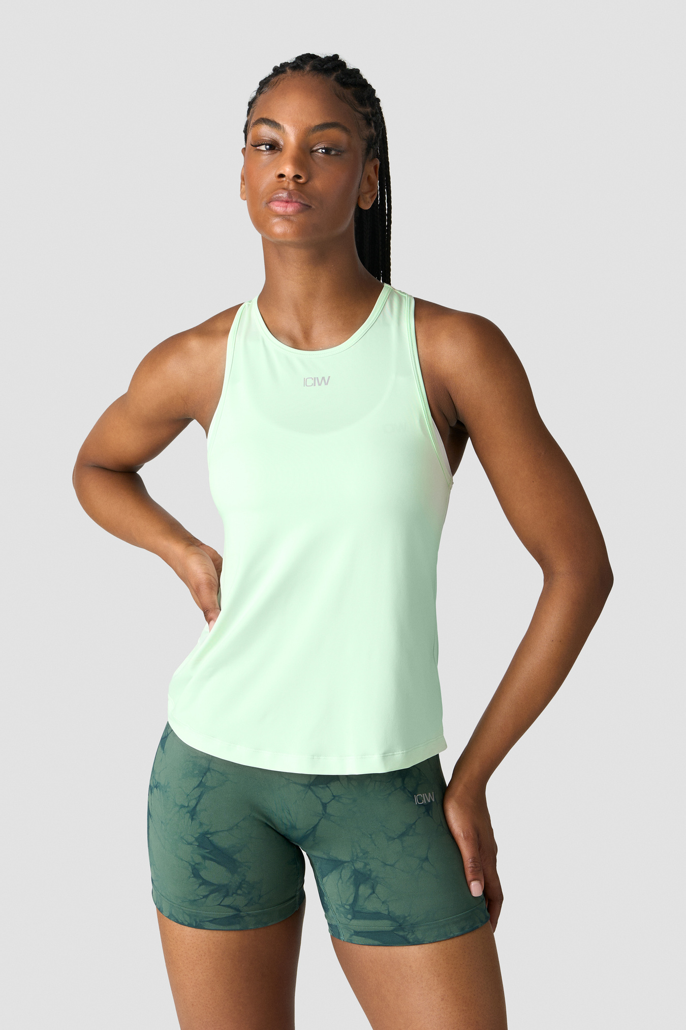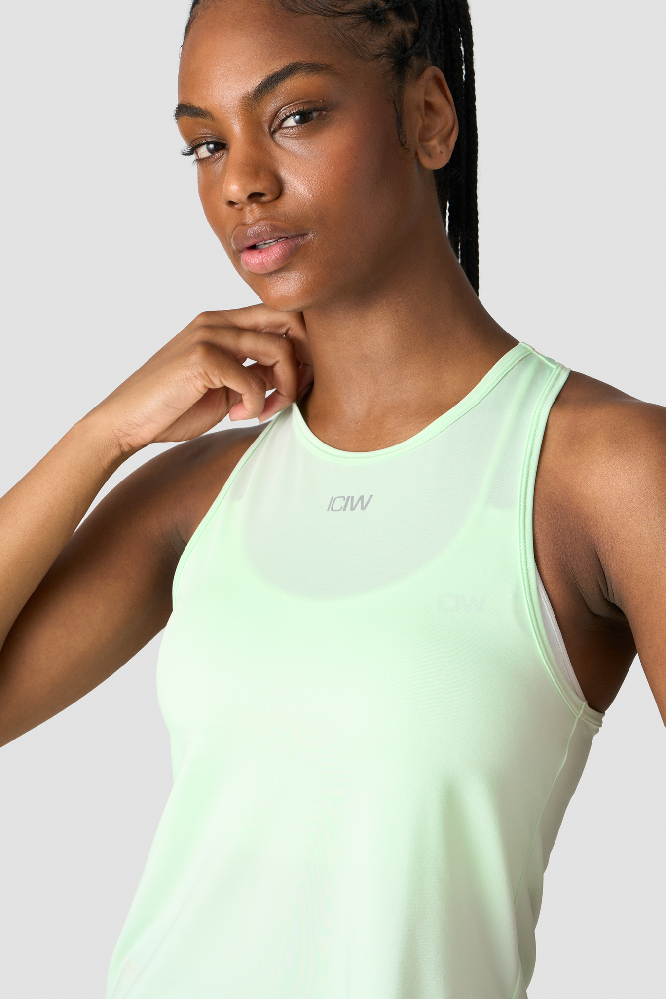 Trænings-tanktop med høj hals. Denne tanktop holder dig kølig og tør under intensiv træning. Høj hals med logo foran og racerback for fuld bevægelse. SWEATTECH™ teknologi. ICIW-logo foran. Standard pasform. 88% Polyester 12% Elastan.