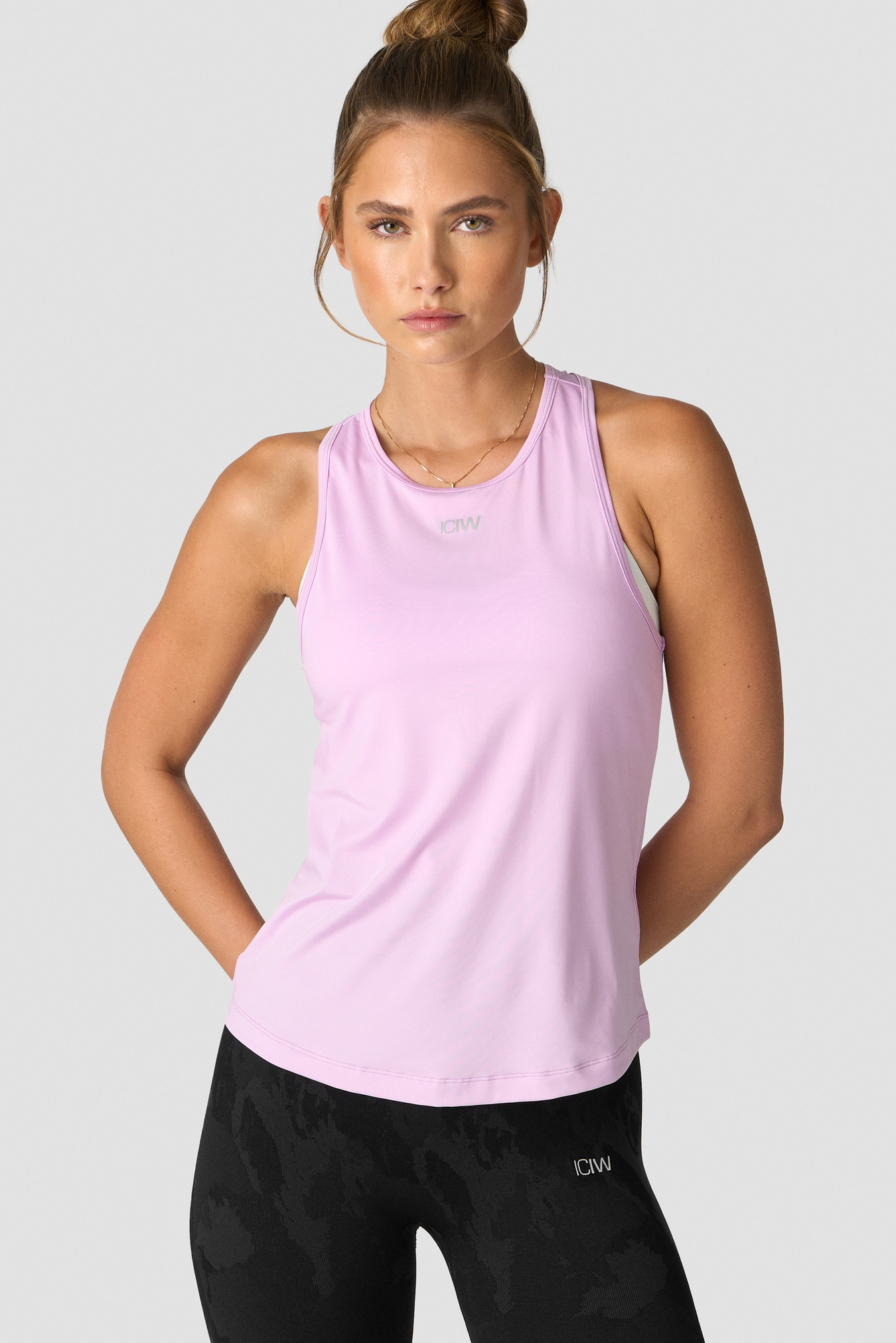 Trænings-tanktop med høj hals. Denne tanktop holder dig kølig og tør under intensiv træning. Høj hals med logo foran og racerback for fuld bevægelse. SWEATTECH™ teknologi. ICIW-logo foran. Standard pasform. 88% Polyester 12% Elastan.