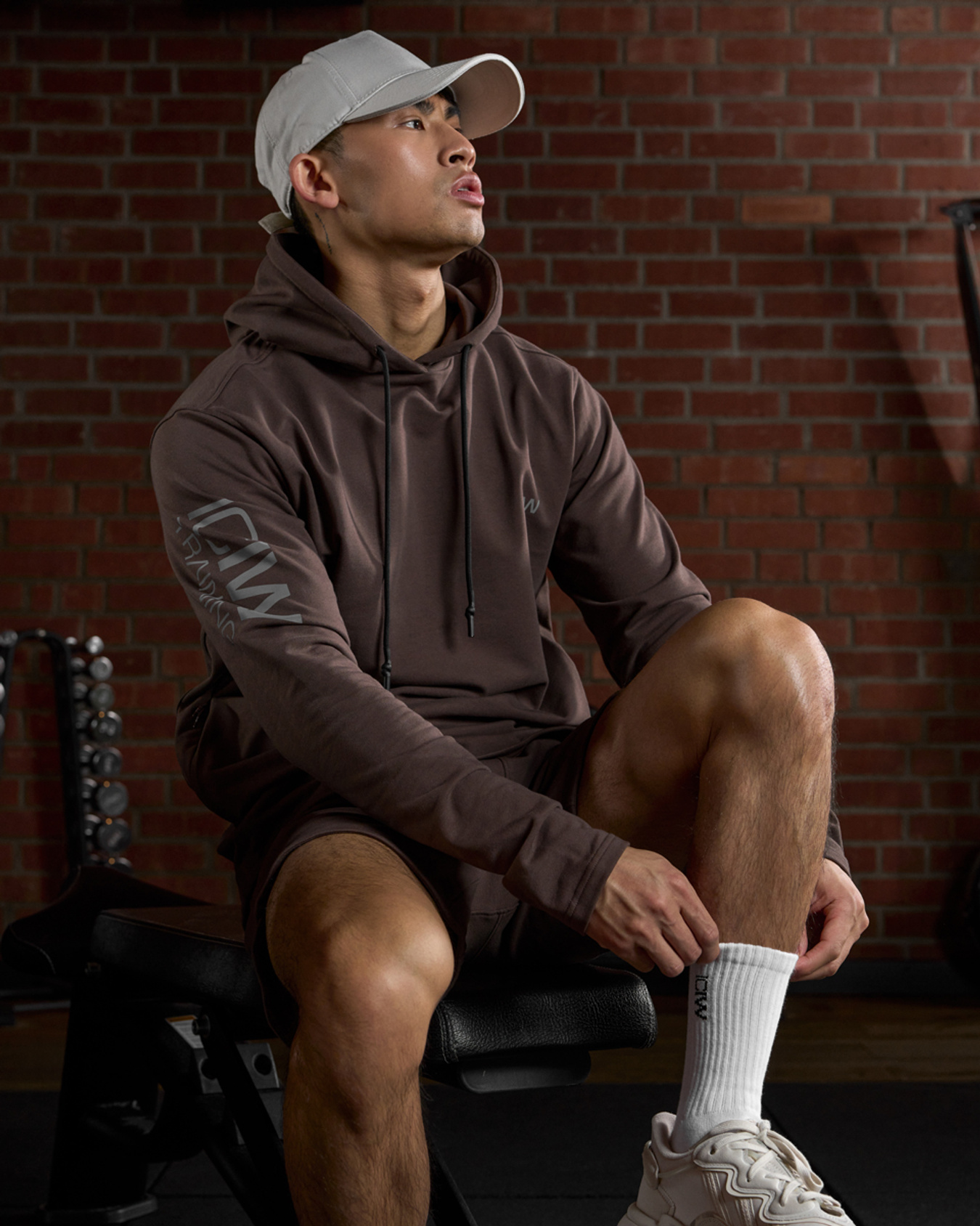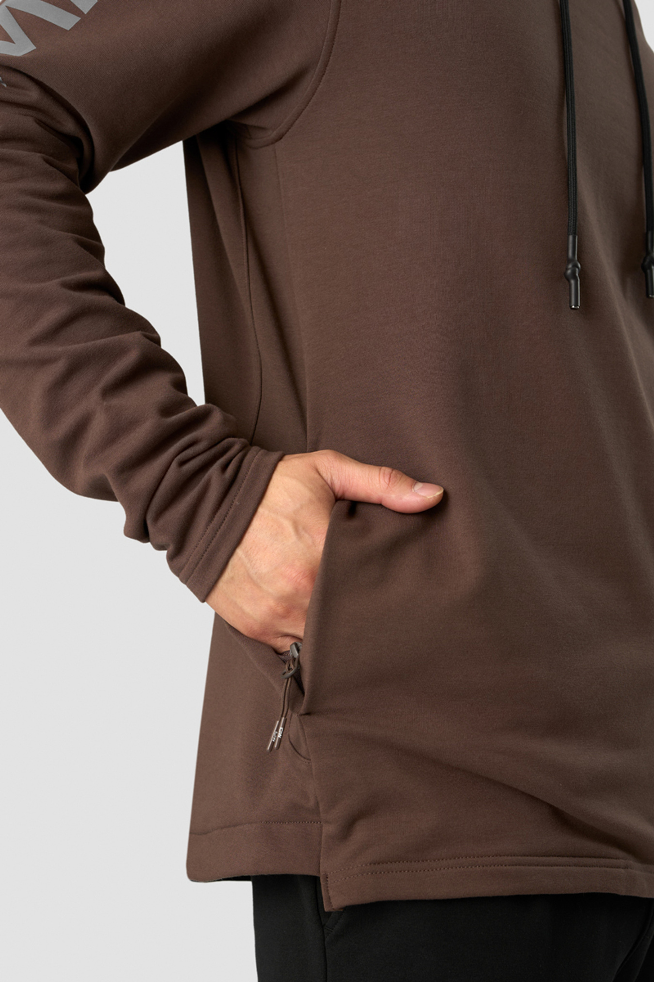 Træningshættetrøje med sidelomme. Stride Hoodie er skabt til fitnesscenteret og opvarmning. Den er lavet af et behageligt bomuldsblandingsmateriale, der holder formen vask efter vask. Den er lidt længere bagpå, har en foret hætte med gummidyppede snore og små slidser i siden med ripstop. En gummistribe på ryggen vil forhindre dig i at glide på træningsbænken. Reflekterende ICIW-logo på armen og den ene sidelomme med lynlås. ICIW-logo foran og på armen. Justerbar hætte. Standard pasform. Lynlåslomme i siden. Længere ryg for komfort og stil. 59,4% bomuld, 34,1% polyester, 6,5% elastan