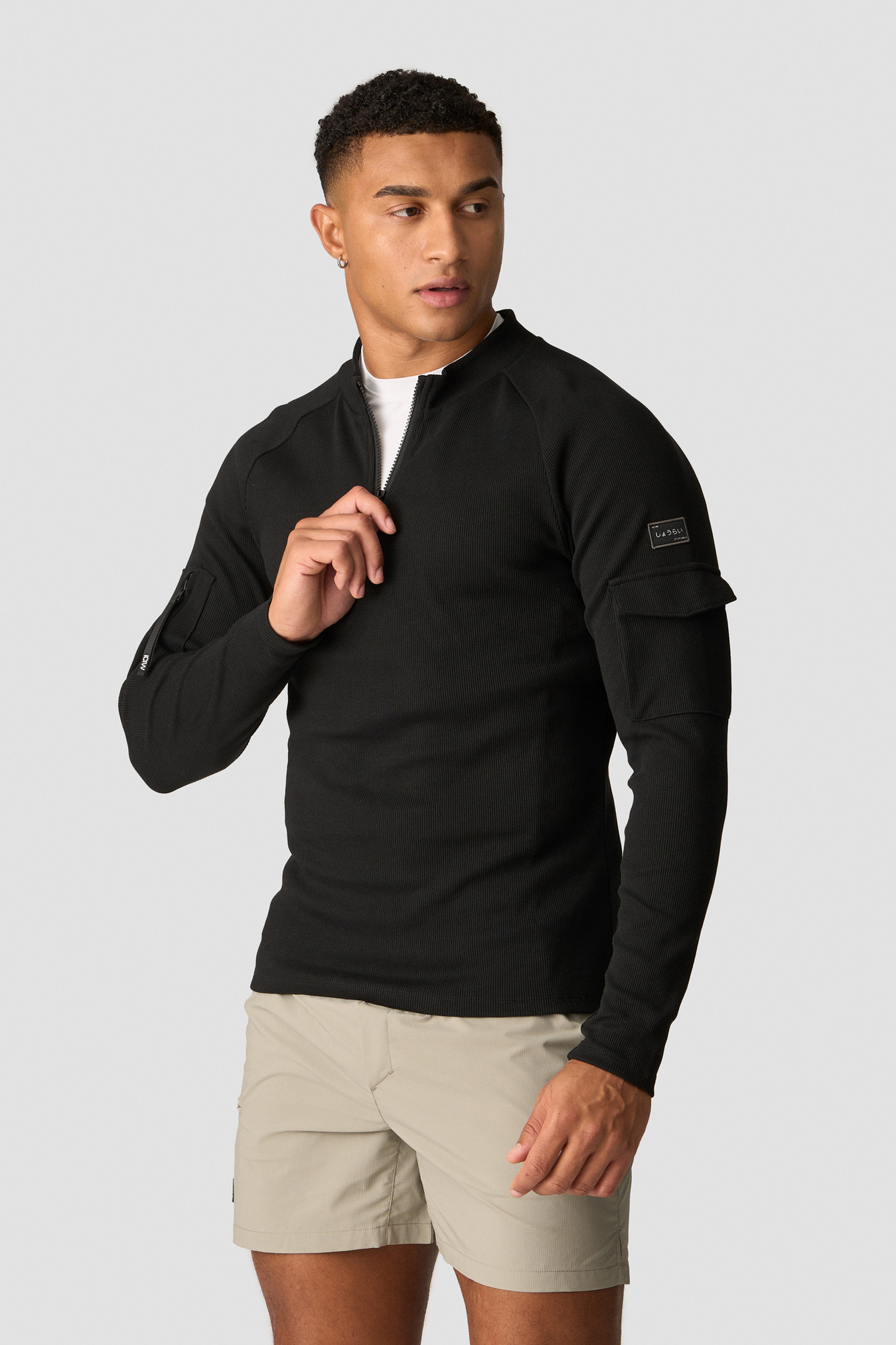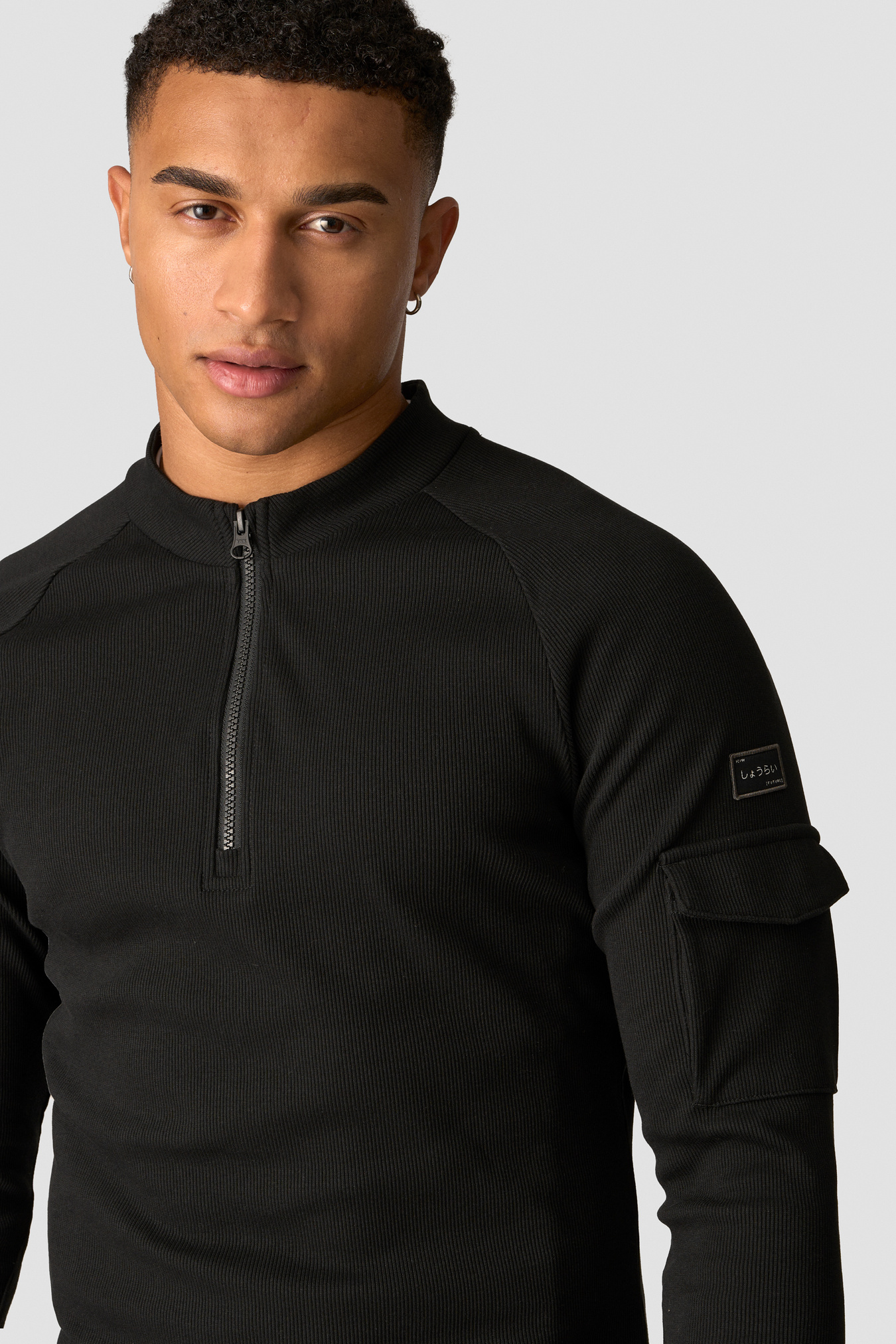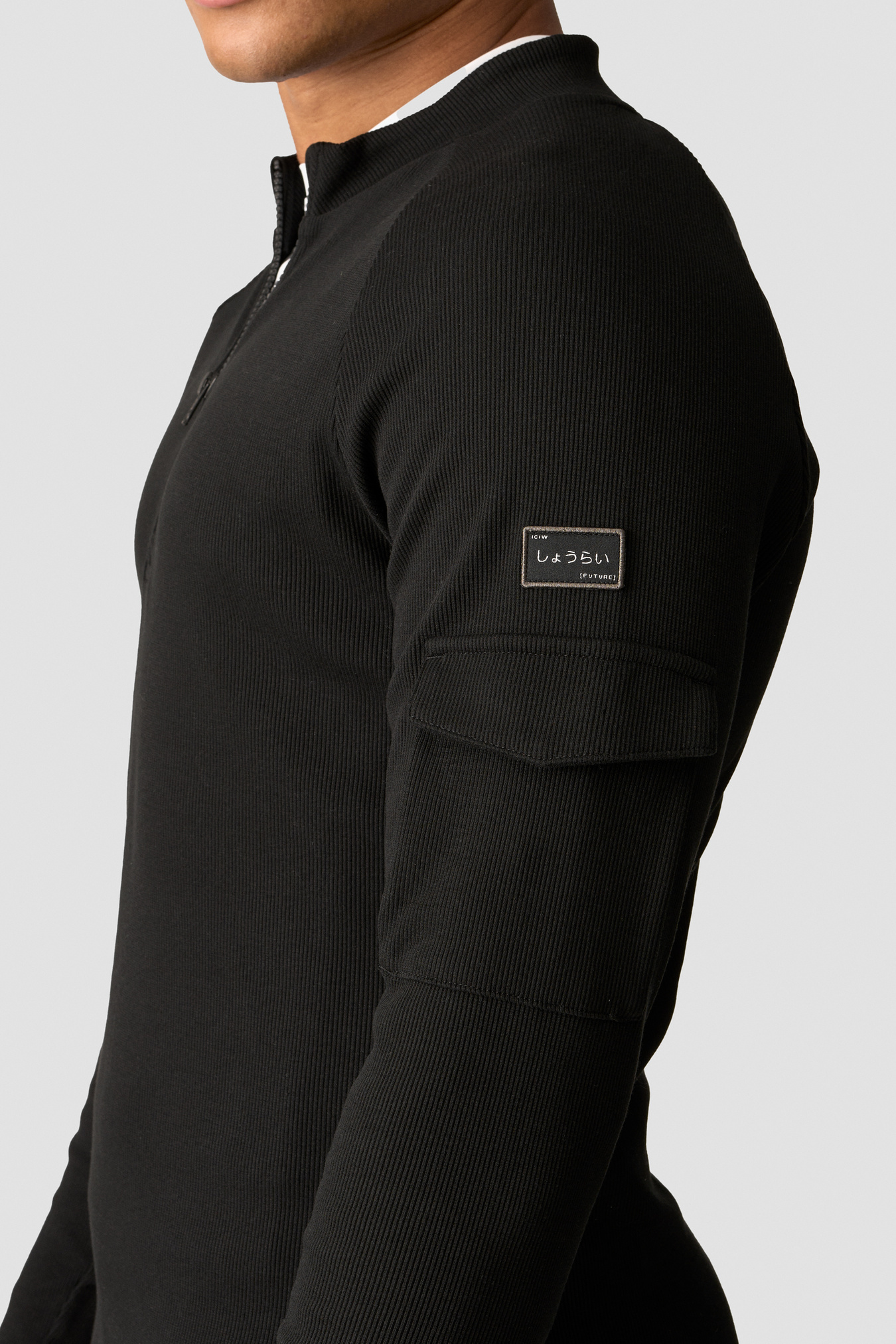 Langærmet i blødt ribbet materiale. Denne langærmede top har lynlås foran med stående krave og lommedetaljer på ærmerne. YKK-lynlås midtpå foran. Lynlåslomme på højre ærme og flaptop-lomme på venstre ærme. Shourai-logomærke. Normal pasform. 57% bomuld, 38% polyester, 5% elastan.