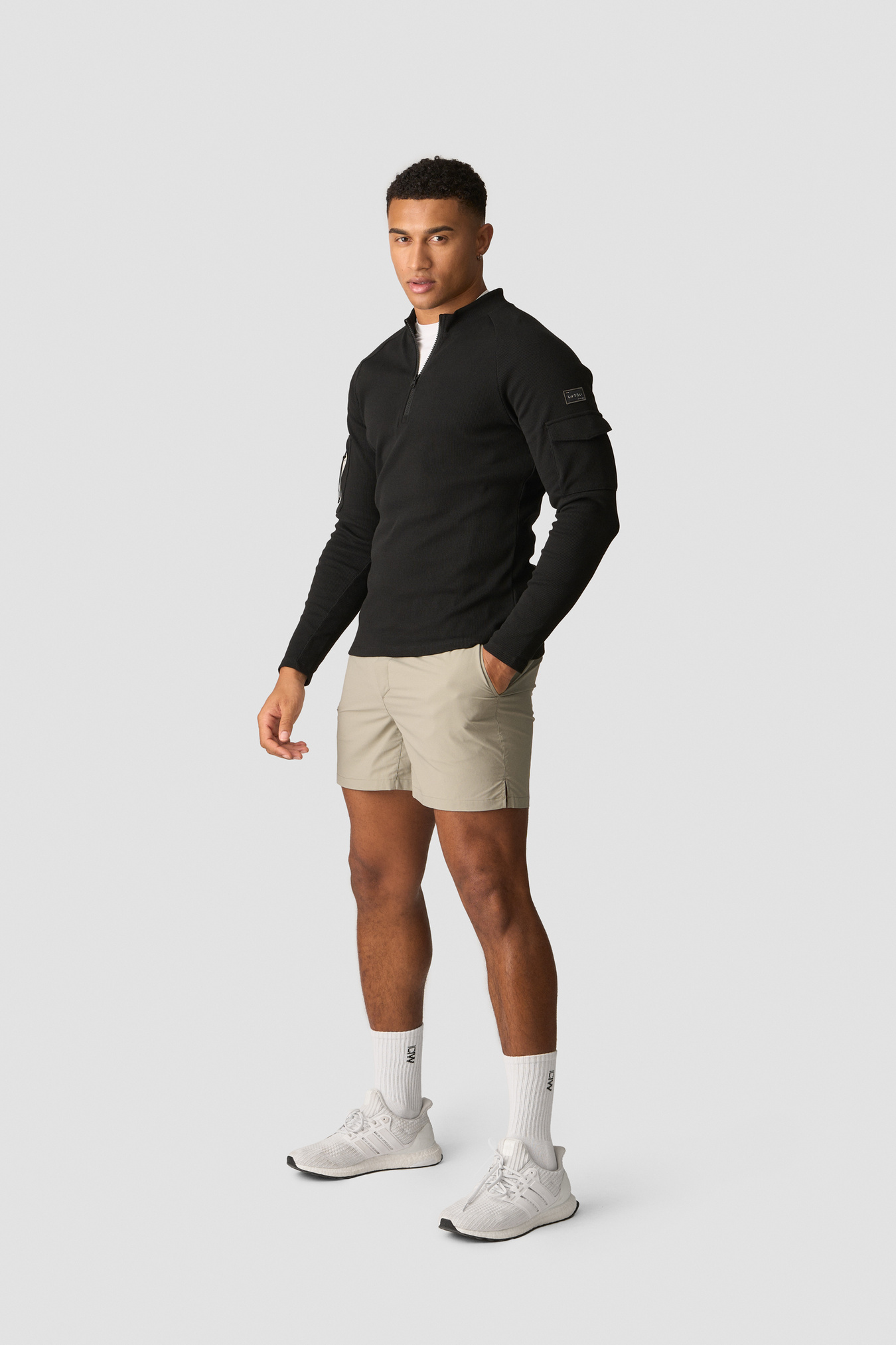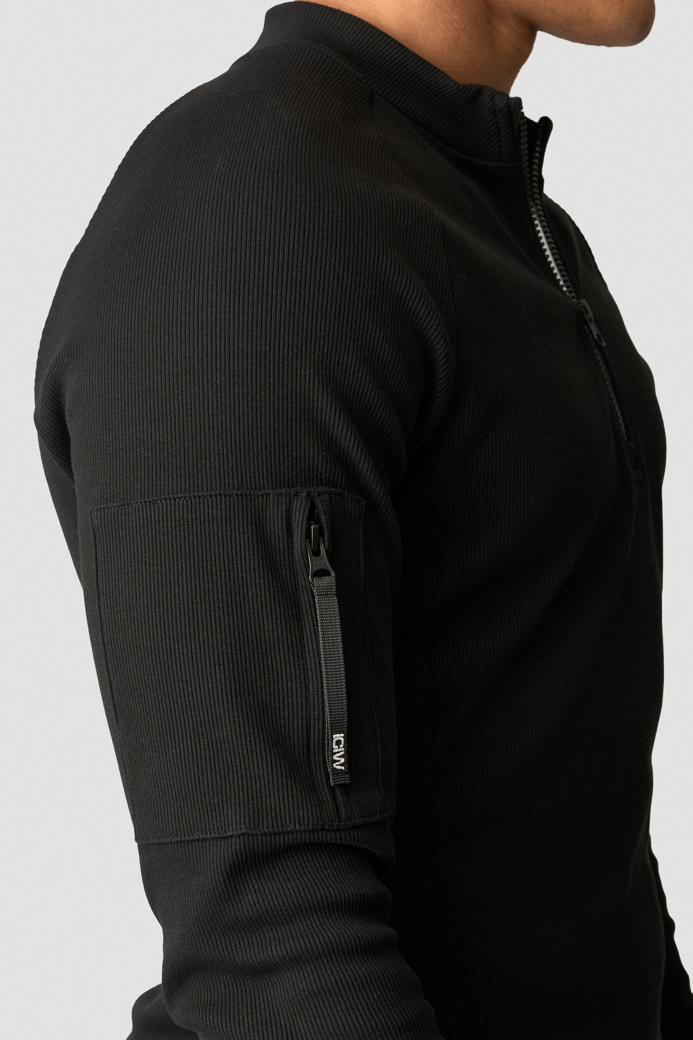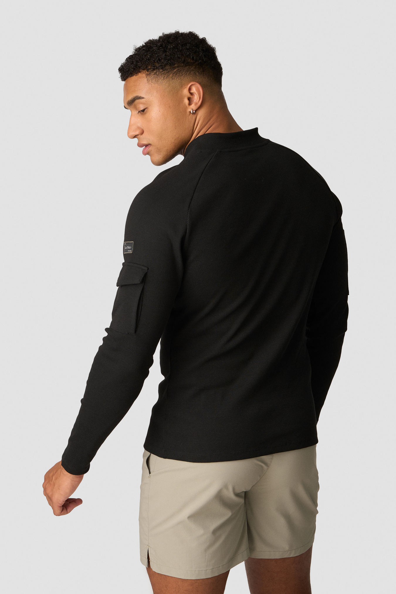 Langærmet i blødt ribbet materiale. Denne langærmede top har lynlås foran med stående krave og lommedetaljer på ærmerne. YKK-lynlås midtpå foran. Lynlåslomme på højre ærme og flaptop-lomme på venstre ærme. Shourai-logomærke. Normal pasform. 57% bomuld, 38% polyester, 5% elastan.